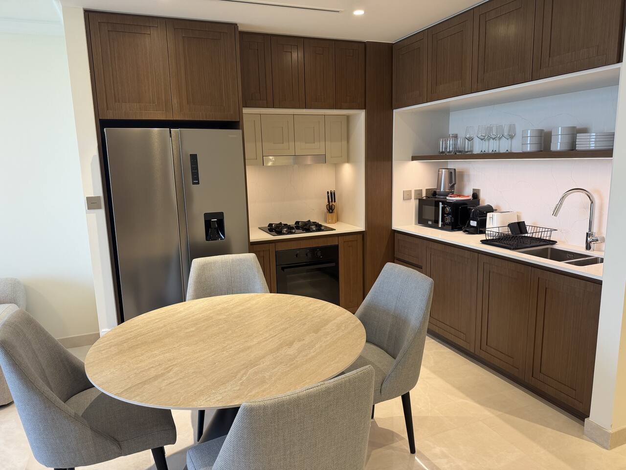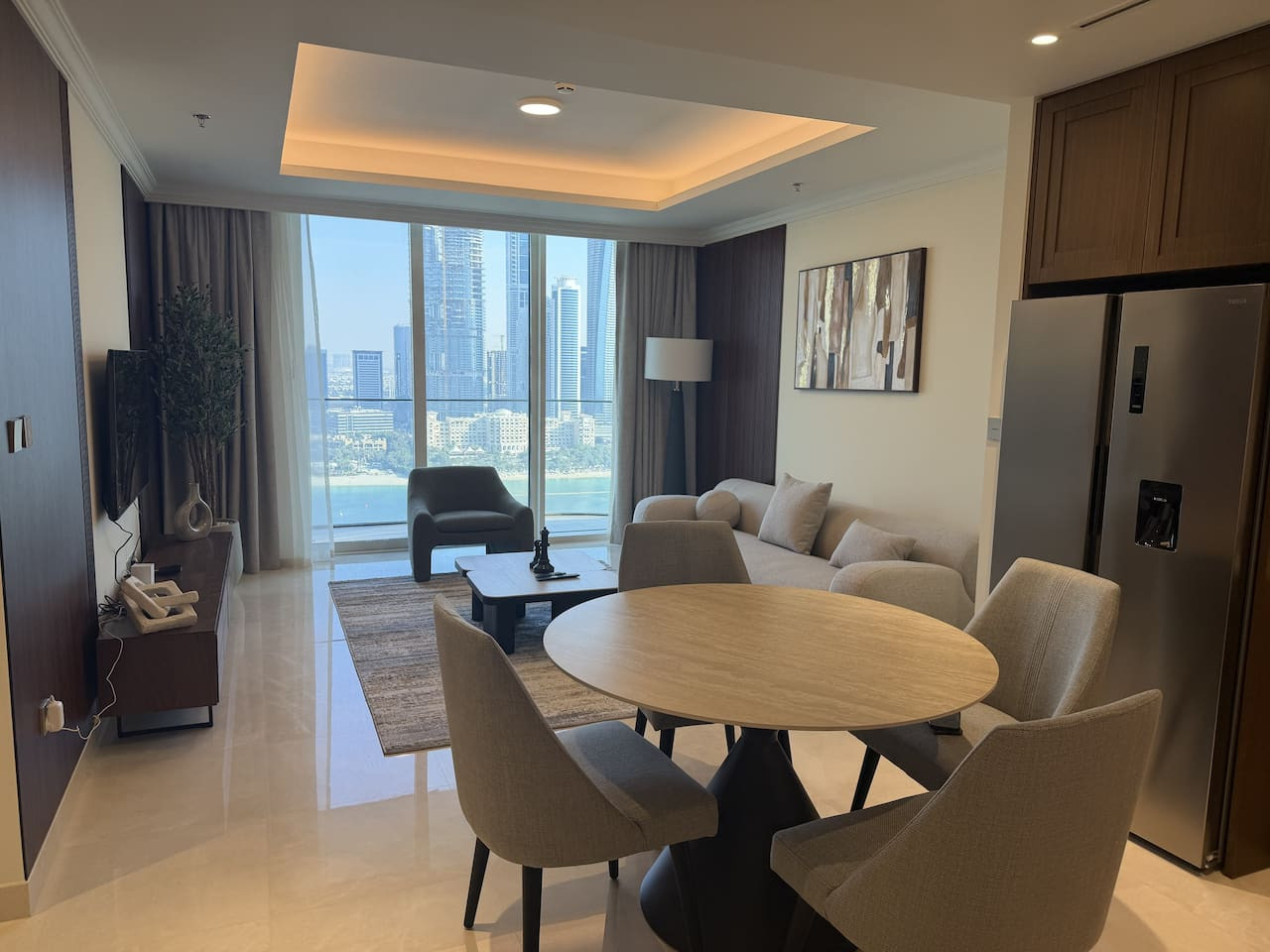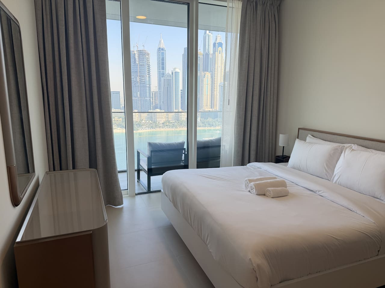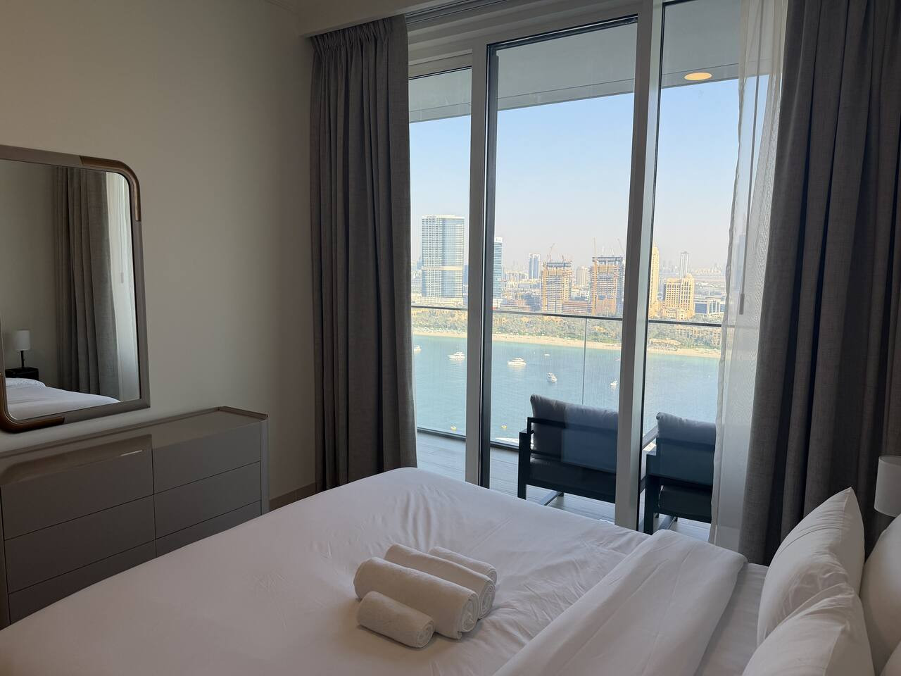 Wake up to breathtaking views of the iconic Burj Al Arab and the stunning skyline of Dubai Marina. This elegant 2-bedroom apartment offers the perfect blend of beachfront serenity and city sophistication. Whether you're visiting for a family holiday, romantic getaway, or business trip, this home offers resort-style living in one of Dubai’s most desirable beachfront locations. Enjoy the best of both world's peaceful beach vibes with easy access to dining, cafes, and nightlife. Our wonderful apartment is set to make your experience memorable and stress-free, wether you are traveling for leisure or work. Check out the reasons to stay with us: -24/7 reception / security - Exquisite elegantly furnished apartment fully set for comfortable stay - Swimming Pool with sun loungers - Gym with modern exercise equipment - Balcony with sea and Marina view to enjoy your morning coffee - Free indoor parking spot - Comfortable 2 Bedrooms with 2 King size beds - Flat-screen Smart TV - Fully equipped kitchen with all necessary appliances; - 2 Bathrooms with shower - Coffee shops, restaurants, and beautiful walks are at the doorstep - Free WIFI - Welcome set of amenities - Bath and Beach Towels - Check-in: 3:00pm onwards (Flexible) - Check-out: Before 11:00am - 5% discount for 7+ night stay -10% discount for 1 month+ stay Our apartment is perfectly located - the Beachfront at The Palm is a gem of luxurious Dubai living. - Distance to beach: 1 minute walk - Distance to coffeeshops: 2 mins walk - Distance to bars and restaurants: 5 min drive You will have the entire place for yourselves during your stay. We're always available via phone or Airbnb messaging for any questions or assistance you may need during your stay. HOUSE RULES: House rules include respecting the neighbors, furniture and no parties. Smoking allowed only on the outside terrace. Adherence to Dubai laws and regulations at all times. LICENSES & FEES: This apartment is fully licensed with Dubai's Department of Tourism and Commerce Marketing (DTCM). Due to local laws, we will need a copy of your passport before you arrive to register you as a guest with the Dubai Tourism Department. ADDITIONAL CLEANING: If you require cleaning during your stay or linen and towel changes, this can be provided at an extra cost. Please contact us to book the service or request the quotes. Cleaning Fee included in the reservation is for the after-stay cleaning.