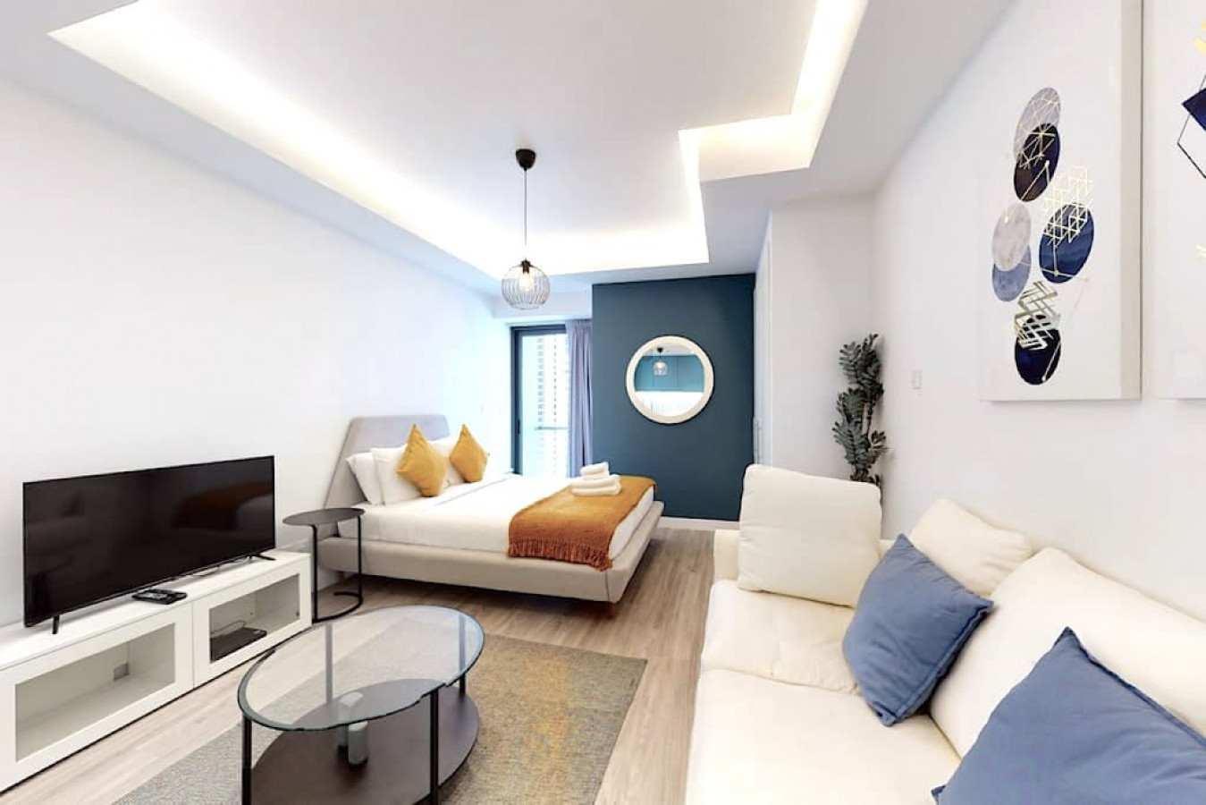 We are proud to welcome you in this fully renovated Studio, completely stocked for a comfortable stay! Gym and swimming pool, ergonomic kitchen, cozy sofa, balcony to enjoy your morning coffee, and a big bed with a fluffy duvet. And this is only the beginning! Take a step outside and you will find yourself in a lively neighborhood with restaurants, beautiful lakes, shiny skyscrapers and the beach just a few minutes away. Our wonderful apartment is set to make your experience memorable and stress-free, whether you are traveling for leisure or work. Check out the reasons to stay with us: - Fully renovated apartment with stylish designer interior - Swimming pool - Free gym with exercise equipment - Balcony to enjoy your morning coffee - Free indoor parking spot (DMCC) - Comfortable big bed - Flat-screen TV - Fully equipped kitchen with all necessary appliances; - Bathroom with shower - Shops, restaurants, and beautiful walks are at the doorstep - Free WIFI - Welcome set of toiletries - Check-in: 3pm onwards - Check-out: Before 11am - 10% discount for 1 month+ stay Our apartment is perfectly located - it will be so convenient to explore what Dubai has to offer! - Distance to shops: 2 mins walk - Distance to bars and restaurants: 5 min - Distance to metro/tram: 10/15 mins walk - Sobha Realty Metro Station is the closest! - Distance to beach: 10 mins drive - Downtown: 25 mins by taxi or 40 mins by metro - Airport: 30 mins by taxi or about an hour by metro You will have the entire place for yourselves during your stay. HOUSE RULES: House rules include respecting the neighbors, furniture and no parties whatsoever. Smoking allowed only on the outside terrace. Adherence to Dubai laws and regulations at all times. ACCESS CARDS: The provided Access and parking cards are to be returned upon check out. In the event of loss or damage to the card the amount of AED350/per card will be claimed from the guest. LICENSES & FEES: This apartment is fully licensed with Dubai's Department of Tourism and Commerce Marketing (DTCM). Due to local laws, we will need a copy of your passport before you arrive to register you as a guest with the Dubai Tourism Department. Please note that as per Local Laws and Regulations, a guest will be charged a Tourism Dirham Fee of AED 10 per night. DTCM Permit No. JUM-GOL-Q1MOF ADDITIONAL CLEANING: Cleaning Fee included in the reservation is for the check-out cleaning after your stay. If you require cleaning during your stay or linen and towel changes, this can be provided at an extra cost. Please contact us to book the service or request the quotes.