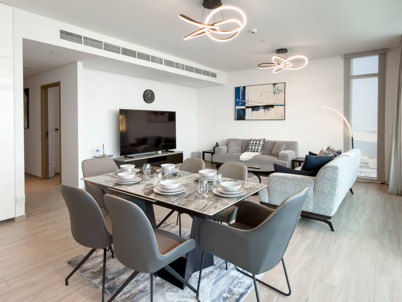 Step into refined living with this modern 3-bedroom apartment plus maid’s room in the heart of Dubai Creek Harbour. The calm interiors, fully equipped kitchen, and comfortable bedrooms make it easy to relax after exploring the city. Unwind on your private balcony, soak up city or creek views, and enjoy exclusive access to a pool and gym. Only minutes away from Downtown Dubai, this home is perfect for those who want to experience Dubai in style. Whether you’re here for a short stay or an extended trip, this home offers both a relaxing retreat and easy access to all of Dubai’s highlights — from Downtown and the Dubai Mall to the vibrant creek promenade. Check out the reasons to stay with us: -24/7 reception / security - Access to the pool and gym - Balcony with spectacular view to enjoy your morning coffee - Free parking space - 3 bedrooms - Flat-screen smart TV - Fully equipped open space kitchen with all necessary appliances; - 3 bathrooms with stand showers and 1 Guest Toilet -Shops, restaurants are all just minutes away - Free WIFI - Welcome set of amenities - Bath and Beach Towels - Check-in: 3:00pm onwards - Check-out: Before 11:00am Located in the vibrant Dubai Creek Harbour, you’ll enjoy a waterfront lifestyle with easy access to: • Downtown Dubai & Burj Khalifa (10–15 mins) • Dubai International Airport (15 mins) • Creek Promenade, Cafés & Dining Spots within walking distance You will have the entire apartment for yourselves during your stay. We're always available via phone or Airbnb messaging for any questions or assistance you may need during your stay. HOUSE RULES: House rules include respecting the neighbors, furniture and no parties and alike. Smoking allowed only on the outside terrace. Adherence to Dubai laws and regulations at all times. LICENSES & FEES: This apartment is fully licensed with Dubai's Department of Tourism and Commerce Marketing (DTCM). Due to local laws, we will need a copy of your passport before you arrive to register you as a guest with the Dubai Tourism Department. ADDITIONAL CLEANING: Cleaning Fee included in the reservation is for the check-out cleaning after your stay. If you require cleaning during your stay or linen and towel changes, this can be provided at an extra cost. Please contact us to book the service or request the quotes.