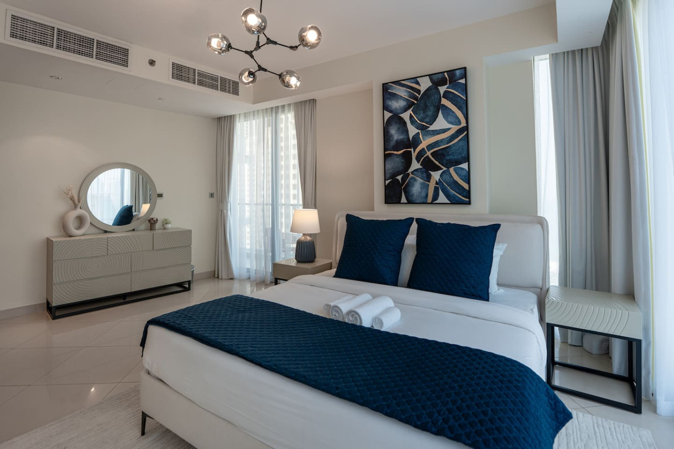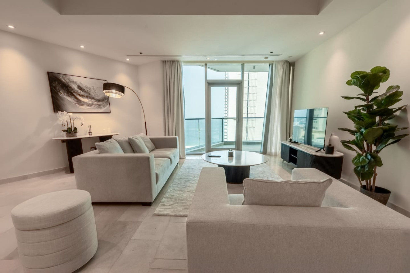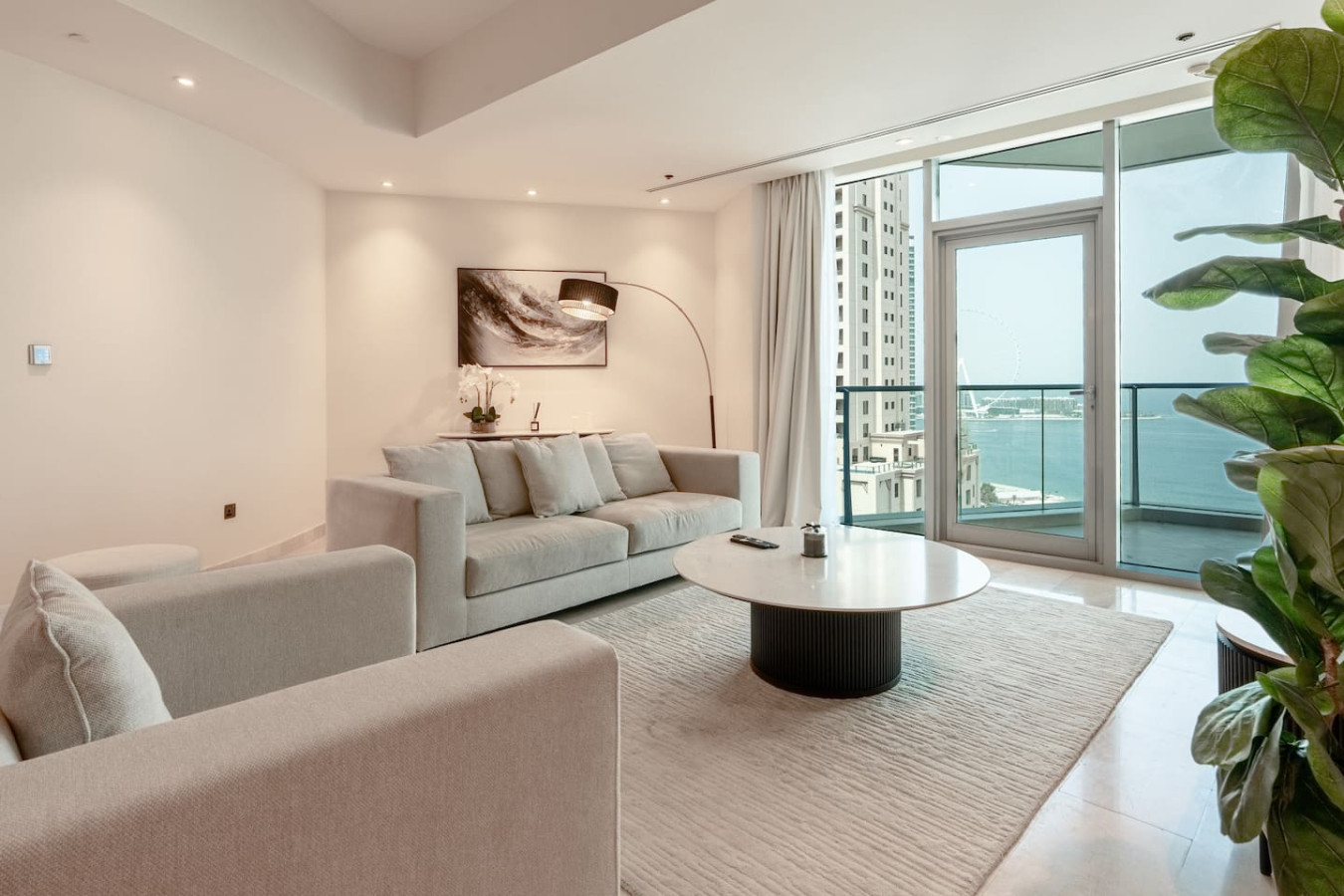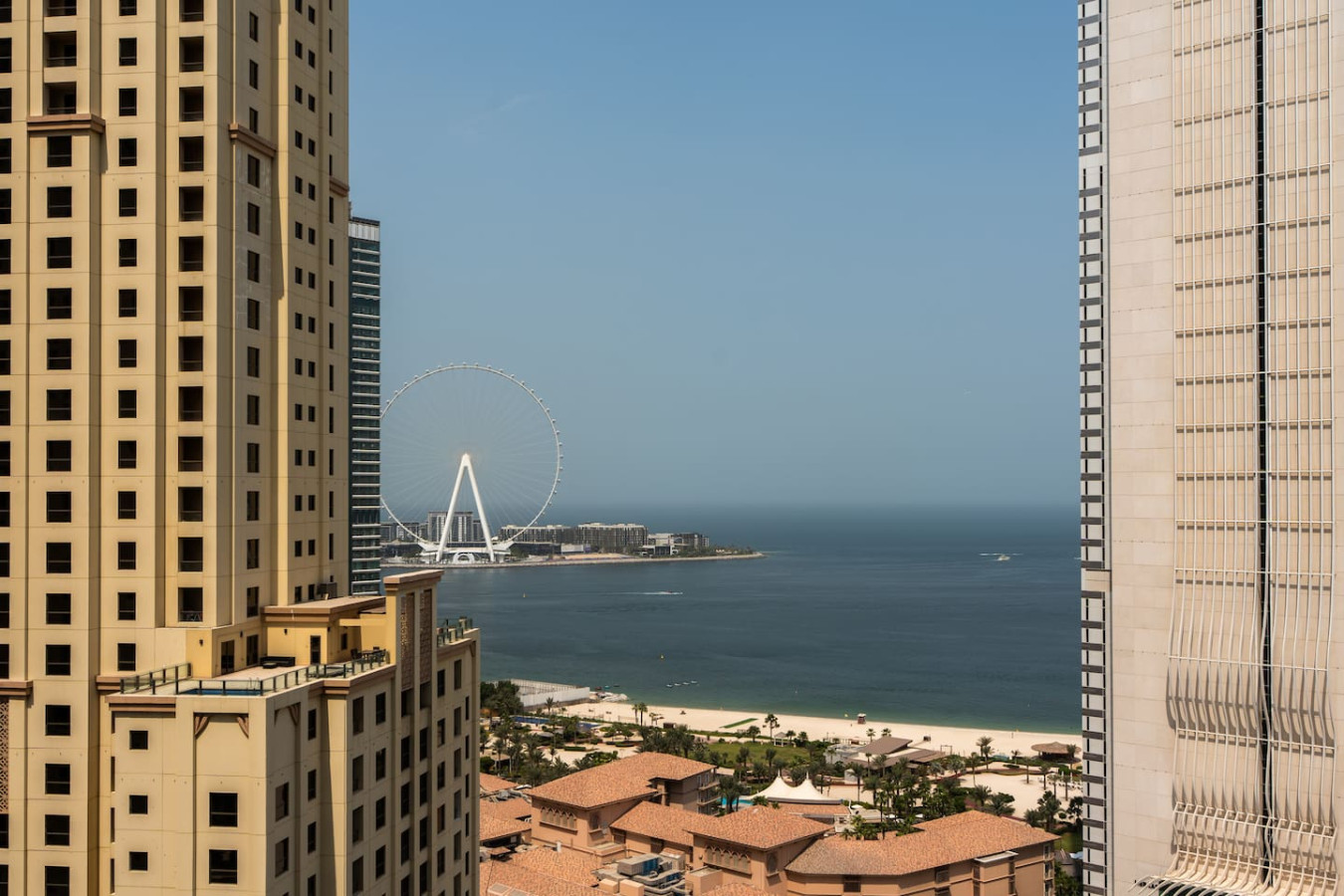 Experience upscale living in this elegant 2-bedroom apartment located in the prestigious Dubai Marina. Enjoy breathtaking views of the sea and the Dubai Eye (Ain Dubai) from your private balcony, all while being steps away from the Marina and JBR beach. Whether you’re here for a beach escape or a stylish city break, you’ll enjoy the perfect blend of comfort, convenience, and luxury. Check out the reasons to stay with us: -24/7 reception / security -Tennis Court - Access to the pool and gym - Balcony with spectacular view to enjoy your morning coffee - Free parking space - 2 bedrooms with amazing view: 1 - Super king; 1 - King bed - Flat-screen smart TV 65" - Fully equipped open space kitchen with all necessary appliances; - 2 bathrooms with stand showers and a Guest Toilet - Beach, shops, restaurants and bars are all just minutes away - Free WIFI - Welcome set of amenities - Beach Towels