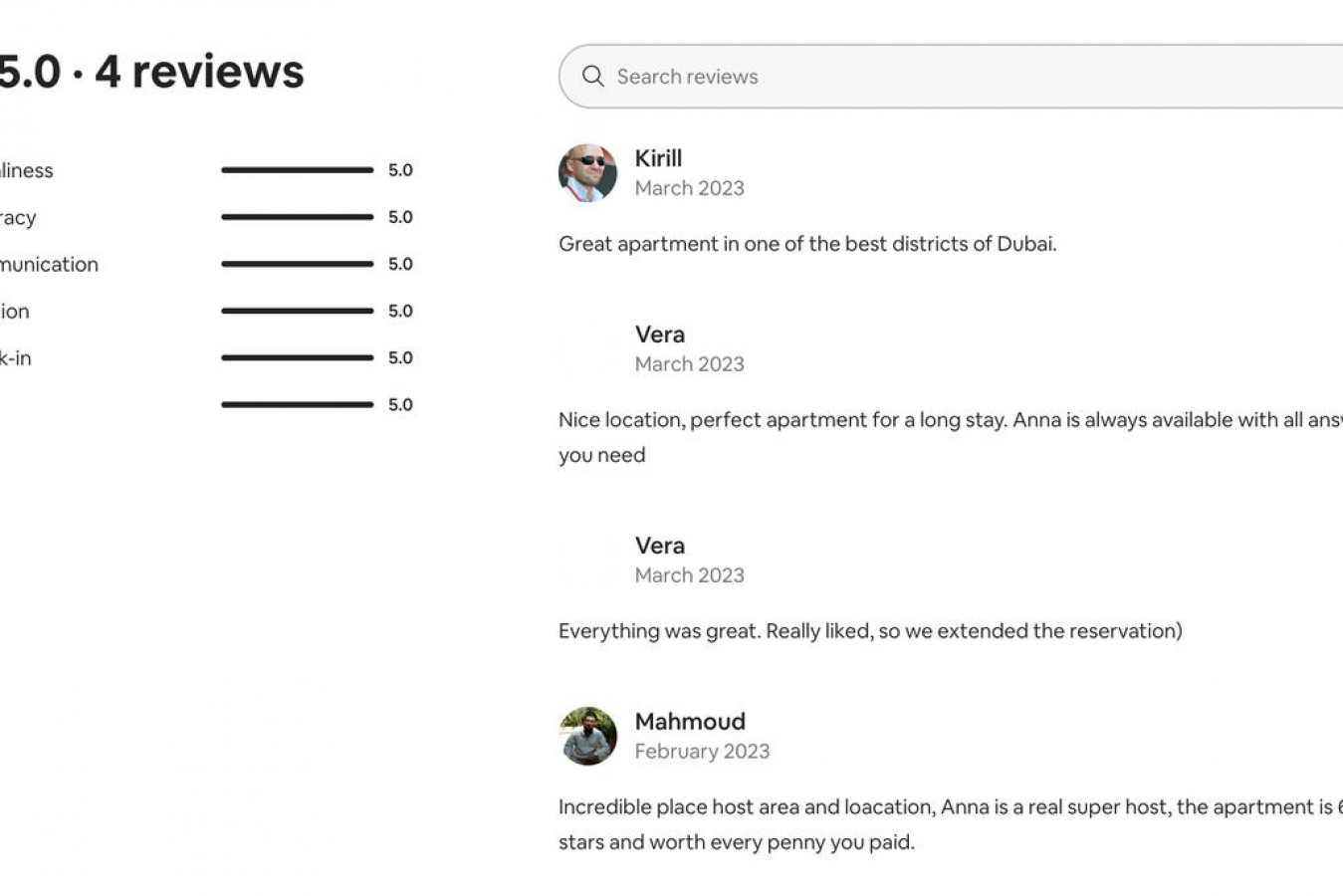 Все хорошо Positive: В целом всем довольны, комфортное общение с хостом, в квартире есть все необходимое (стиральная машина, посудомойка, посуда, утюг, даже был 1 переходник на розетку - в ОАЭ они особые, не забывайте), до зала и бассейна за 4 дня пребывания не дошли. Район знаем, нравится, он не новый, с невысокой застройкой и действительно greens. Negative: Есть небольшие нюансы (не существенно для нас): квартира не прям свежая, видны следы жизни на краске стен, мебели, все было убрано, но как будто это делали давно; был запах непроветренного помещения каждый раз, если не открывать окна; возле комплекса сейчас ремонтные работы, шума не было, но на балконе мебель в строительной пыли