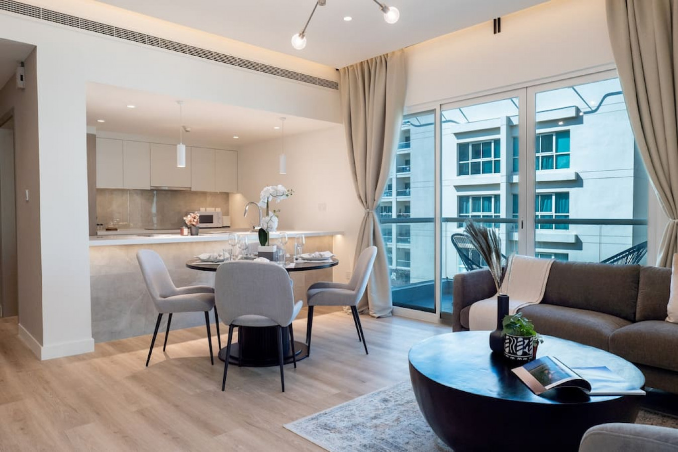 We are proud to welcome you in this fully renovated apartment, completely equipped for a comfortable stay! Gym and swimming pool, kitchen and dining area, cozy sofa, balcony to enjoy your morning coffee, and a big bed with a fluffy duvet. And this is only the beginning! Take a step outside and you will find yourself in the greenest neighborhood of Dubai. Enjoy peaceful walks around the lakes, dining in nearby restaurants, or move around the city. Our wonderful apartment is set to make your experience memorable and stress-free, wether you are traveling for leisure or work. Check out the reasons to stay with us: - Newly renovated apartment with stylish designer interior - Swimming pool - Free gym with exercise equipment - Balcony with city view to enjoy your morning coffee - Free indoor parking spot - Comfortable big bed - Flat-screen TV - Fully equipped kitchen with all necessary appliances; - Bathroom with shower - Shops, restaurants, and beautiful walks are at the doorstep - Free WIFI - Welcome set of toiletries - Check-in: 3pm onwards - Check-out: Before 11am - 10% discount for 1 month+ stay Our apartment is perfectly located - it will be so convenient to explore what Dubai has to offer! - Distance to shops: 5 mins walk - Distance to bars and restaurants: 5 min - Distance to metro: 20 mins walk - Dubai Internet City is the closest! - Distance to beach: 10-15 minutes drive - Downtown: 25 mins by taxi or about 40 mins by metro - Airport: 40 mins by taxi or about an hour by metro You will have the entire place for yourselves during your stay. HOUSE RULES: House rules include respecting the neighbors, furniture and no parties whatsoever. Smoking allowed only on the outside terrace. Adherence to Dubai laws and regulations at all times. ACCESS CARDS: The provided Access and parking cards are to be returned upon check out. In the event of loss or damage to the card the amount of AED350/per card will be claimed from the guest. LICENSES & FEES: This apartment is fully licensed with Dubai's Department of Tourism and Commerce Marketing (DTCM). Due to local laws, we will need a copy of your passport before you arrive to register you as a guest with the Dubai Tourism Department. Please note that as per Local Laws and Regulations, a guest will be charged a Tourism Dirham Fee of AED 10 per night. DTCM Permit No. GRE-AL-GDULJ ADDITIONAL CLEANING: Cleaning Fee included in the reservation is for the check-out cleaning after your stay. If you require cleaning during your stay or linen and towel changes, this can be provided at an extra cost. Please contact us to book the service or request the quotes.