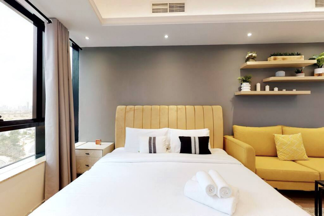 كانت اقامه جيده بشكل عام لاكن كانت لدي مشكلتان ألا وهي التكييف لم يكن يعمل على الوجه المطلوب والثانيه هي ان المواقف المخصصه لي كانت بعيده جدا جدا حيث لم تكن في نفس البرج